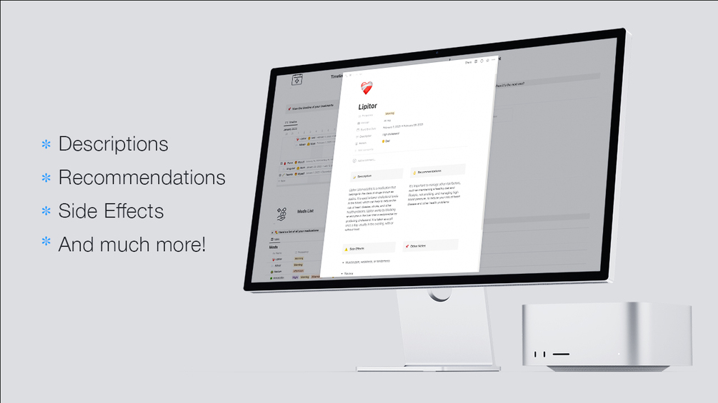 Take control of your health and manage your medications with confidence using this comprehensive Track your Meds Notion template.